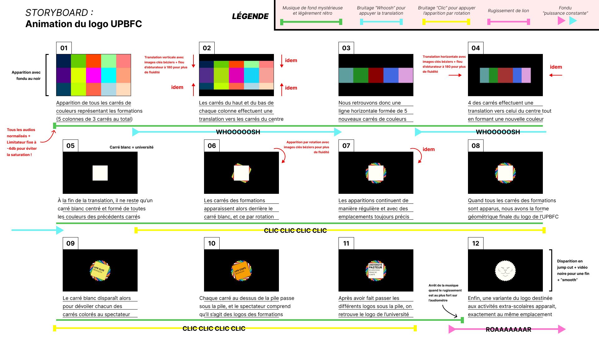 Ce projet s'est fait en plusieurs étapes. J'ai d'abord réalisé un logo polymorphe pour l'université Pasteur de Bourgogne Franche-Comté. Le logo principal avait une déclinaison pour chaque formation de l'université, ainsi qu'une version "mascotte", en forme de lion, pour les activités extra-scolaires. J'ai ensuite réalisé une animation immersive pour mettre en avant les différents aspects et la construction de mon projet.